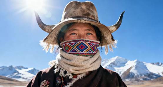 *Tibetans wear scarves around their necks and a wide hat to protect their skin from the strong ultraviolet when going outing.*
