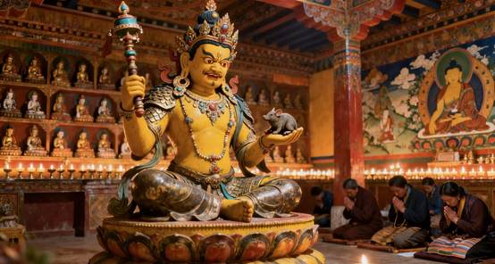 *The Statue of Yellow Jambhala (the god of fortune) is being worshiped by Tibetans in Jokhang Temple in urban Lhasa.*